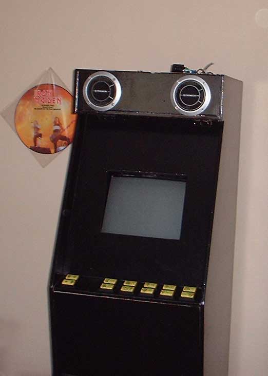 Ok, so this one isn't a MAME cabinet, but still. Jesus. What in the name of all that is holy is this? It's a jukebox. Isn't that MF obvious? DUH! When I think jukebox, I'm definately thinking about a sloppily built, upright, black arcade cabinet with a buch of slot machine buttons on it. Don't forget to throw in a tiny monitor with a giant flat black marquee around it. No doubt. If you're going to make a MF jukebox, it should LOOK like a jukebox. This doesn't even LOOK like an arcade game, it just looks like CRAP! But hey, the software is pretty decent. And there's that snazzy Iron Maiden disc on the wall. METAL UP UR AZZ D00D! |