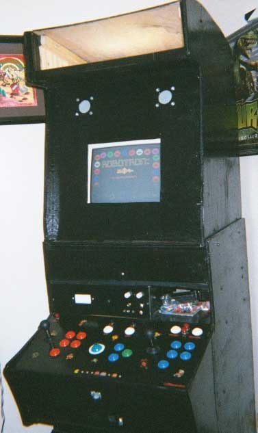 Enjoy! Ok, so the picture has robotron on the screen, so lamer obviously figured out he could use the player ONE and player TWO sticks to control ONE game. But the lightbulb must have burnt out there, because he's got 70 jillion buttons in about 7.2 square centimeters of real estate. Yeah buddy, that little pimple of a trackball you have there really needed three buttons of it's own. Three. Right. I wonder if he can talk to people in Alaska on that HAM radio that he has mashed in there in front of the control panel. Not shown in this picture is the (apparently) removable steering wheel that mounts so low that you must have to drive it with your penis. This is a skill I do not posess. Penis driving. Do you think he keeps his STRATEGY GUIDES and FAQs from the INTERNET in the glove compartment with no door? I sure would. And the "gaping hole" marquee is a unique style of "complete ass" that really brings the whole thing together. |
