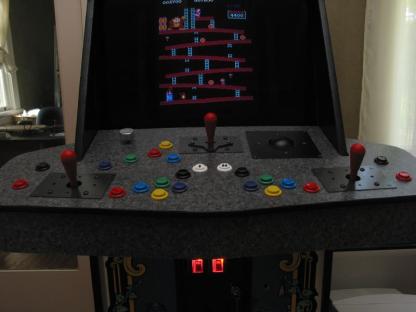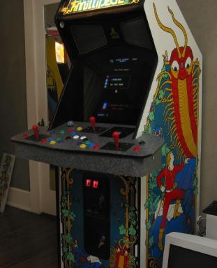 The person who built this is very proud of the fact that they didn't "harm" the millipede in any way by hanging this giant tumor of a control panel off the front of it. Hey, that's just great. Good for you. But rather than try to blend the control panel in with art style and classic look of the carefully preserved millipede; they chose to use some sort of wanna be granite formica or something. They pushed the evelope even further by randomly throwing in buttons all over the god damn place and leaving the mounting plates exposed. Many people who build a MAME box have a 'dedicated' four way stick for classic games that only understand 4 directions. This is all well and good. But wtf is with this? Three sticks, that are ALL 8way, and ALL have restrictor plates mounted under them? WHAT IS THE POINT? If your 4 way is just a restricted 8 way, why fuck things up with a third stick? Know of many 3 player games? DOYA? Rampart. Oh wait, that's _TRACKBALLS_. Xenophobe? Oh, hold up, that's on a horizontal monitor and would like like 2 specks of ass smashed into this small vertical montior. Genius. Fucking genius. Wasted a crapload of space for a 3rd stick that isn't even a 'real' 4way. Hallelujia. 23 buttons. Twenty MF Three. Not a single one of which seems to be placed in any sort of sane manner. The crazy mess in the middle looks like some sort of pyramid; maybe they're egyptian. This one looks even more like a skittle spill than the previous abomination with too many buttons, due to the rainbow of god damn fruit flavors. Maybe they were hoping it would start raining candy like in the TV commercials. That shit is real, you know. What I really don't get is that this cabinet was featured on the Discovery Channel in Canada. What the hell. Oh, well, I guess they make a big deal out of the special olympics too. That probably helps to explain things. AND IT RUNS ON LUNIX!! NYAR!! |