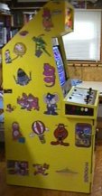 All the artistic style and grace of a velvet black-light painting of Elvis, dead on the shitter. Some people shouldn't even be allowed to pick out their own clothes, let alone do something 'artistic'. I can understand not being able to decide WTF you want to have for art on the side of your cabinet. But I _CAN'T_ understand why anyone would think it's a good idea to print up plain pictures of every video game character they can find and decoupage them onto the side of the cabinet in some sort of hideous grid pattern. The classy white rectangle backgrounds on some of them really complete the effect of total hideousness. Is that even a word? 'hideousness'? God I hope so, because I can't think of anything else. You can't really tell from these pictures due to size, but dude has 8 buttons per player. EIGHT. Ugh. I'm going to go pour bleach in my eyes to see if I can make it go away. |